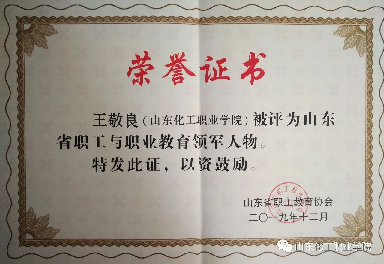 山东化工职业学院院长王敬良被评为山东省职工与职业教育领军人物