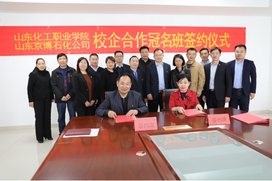 4月11日,山东化工职业学院与山东京博石化有限公司举行校企合作办学冠名班签约仪式。学院副院长李欣及部分中层干部,山东京博石化有限公司人力资源总监马艺文、副总工程师曹永芳、人力资源管理部经理高家能等,潍坊滨海经济开发区中央城区开发服务中心常务副主任贾令国、服务处处长王宗强出席了签约仪式。