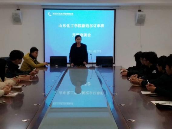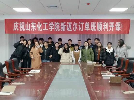 2017年10月18日,山东化工职业学院与新迈尔(北京)科技有限公司正式签约,电子商务专业成为我院第一个校企共建专业。企业岗位核心课程的植入及企业师资的加入,吸引了2017级17名同学自愿加入新迈尔订单班。2017年11月27日,订单班于4308教室顺利举行了开班仪式。