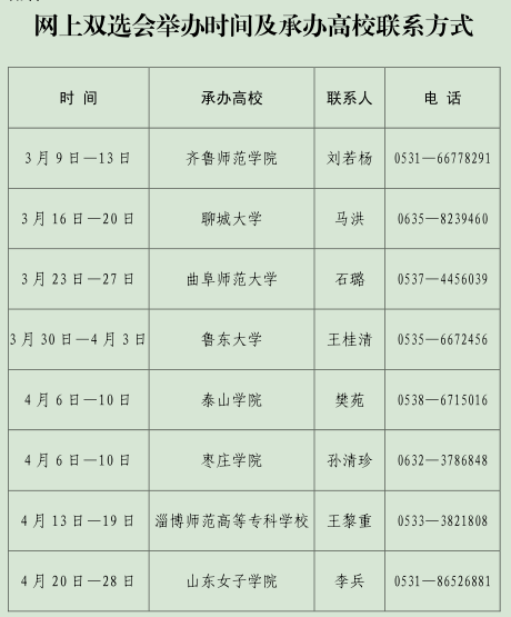 依托山东省教育厅高校毕业生就业网开展线上网络招聘会,网址:http://gxjy.sdei.edu.cn/;依托“山东就业创业导航”微信平台开展视频面试。